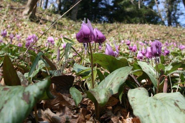 史跡(しせき)として有名な白河の関跡(しらかわのせきあと)は、小高い丘になっており、3月下旬から4月上旬には、一面にかたくりの花が咲きます。また、関跡周辺は「白河関の森公園」として整備され、木と土のぬくもりがいっぱいです。白河地方の直家造りのかやぶき民家をそのまま移築(いちく)したふるさとの家や、白河の歴史(れきし)を紹介(しょうかい)した「ビジュアルハウス」などの観光施設(かんこうしせつ)が整っています。